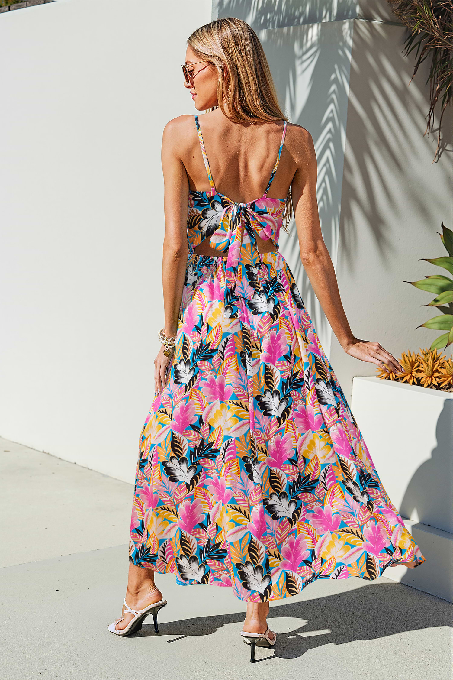 Adrenaline Tropical Maxi-klänningen känns djärv, luftig och full av rörelse! En smickrande V-ringning, ärmlös knut och böljande maxilängd ger looken avslappnad men iögonfallande.