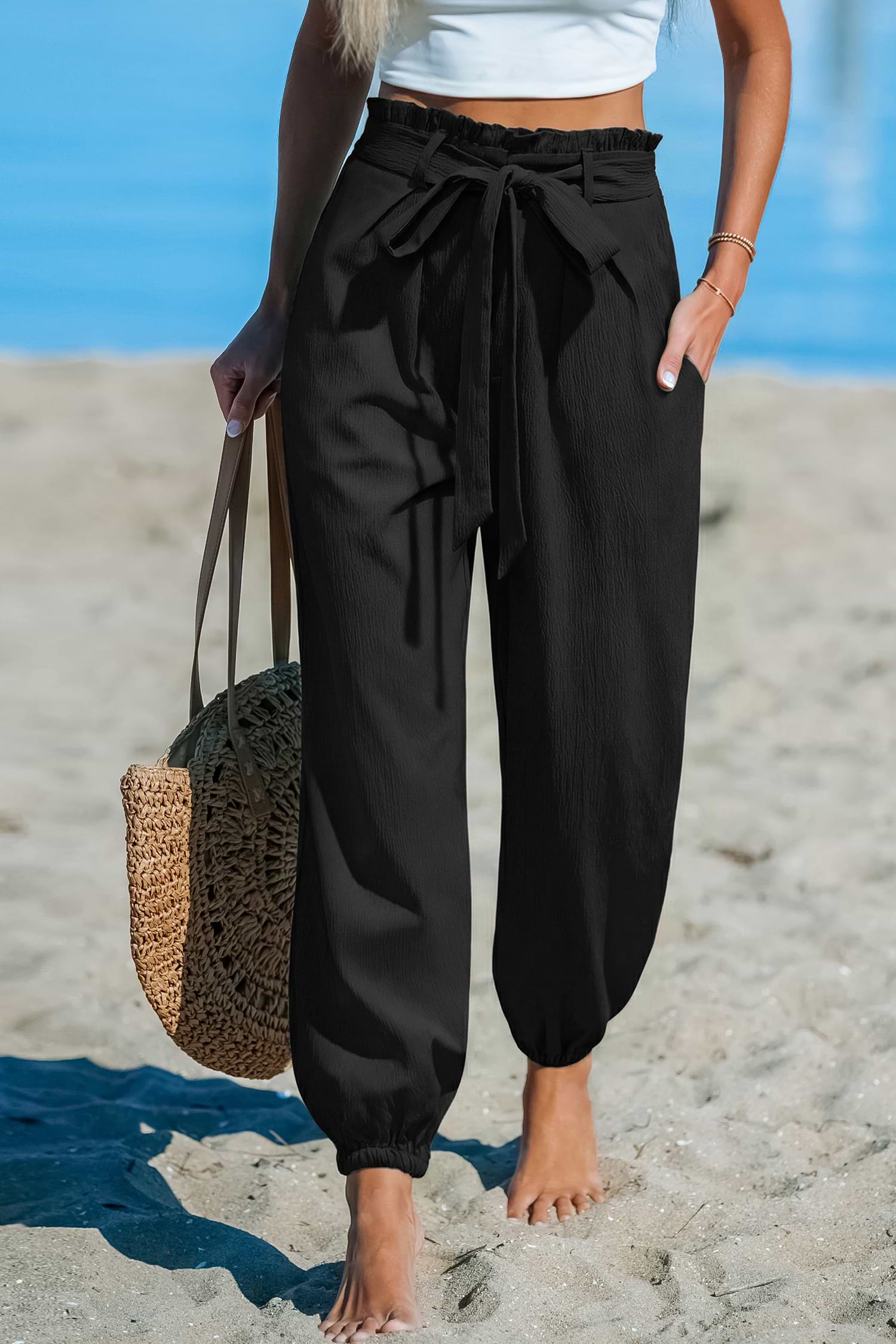 De här Casual Friday Black-byxorna ger en avslappnad känsla med en elegant passform! De har en paperbag-midja och avsmalnande ben för en bekväm vardagspassform som fungerar även efter 9-till-5-arbetet.