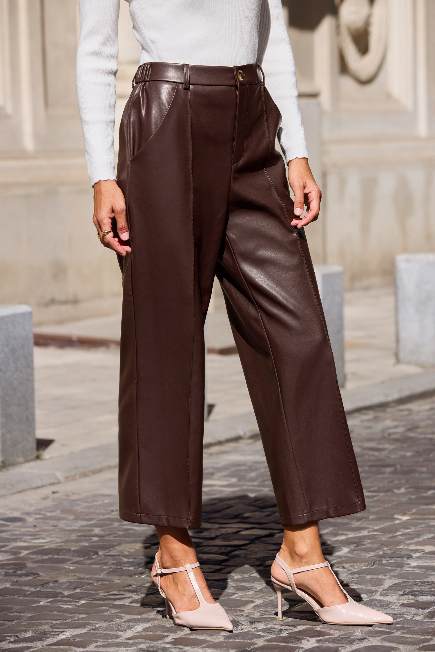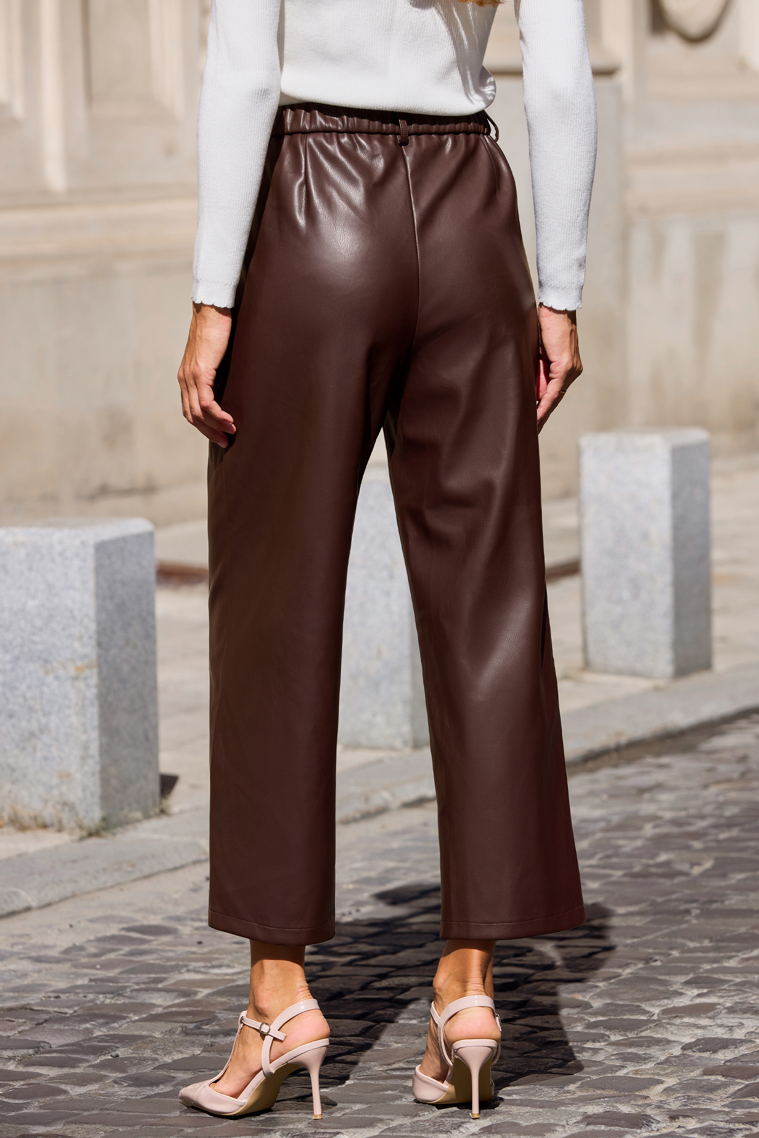 Danger Zone Brown Pants ger självsäker och avslappnad energi till din vardagliga look! Tillverkade av konstläder och designade med bälteshällor, en ficka och raka ben är de mångsidiga nog för både dag och kväll.