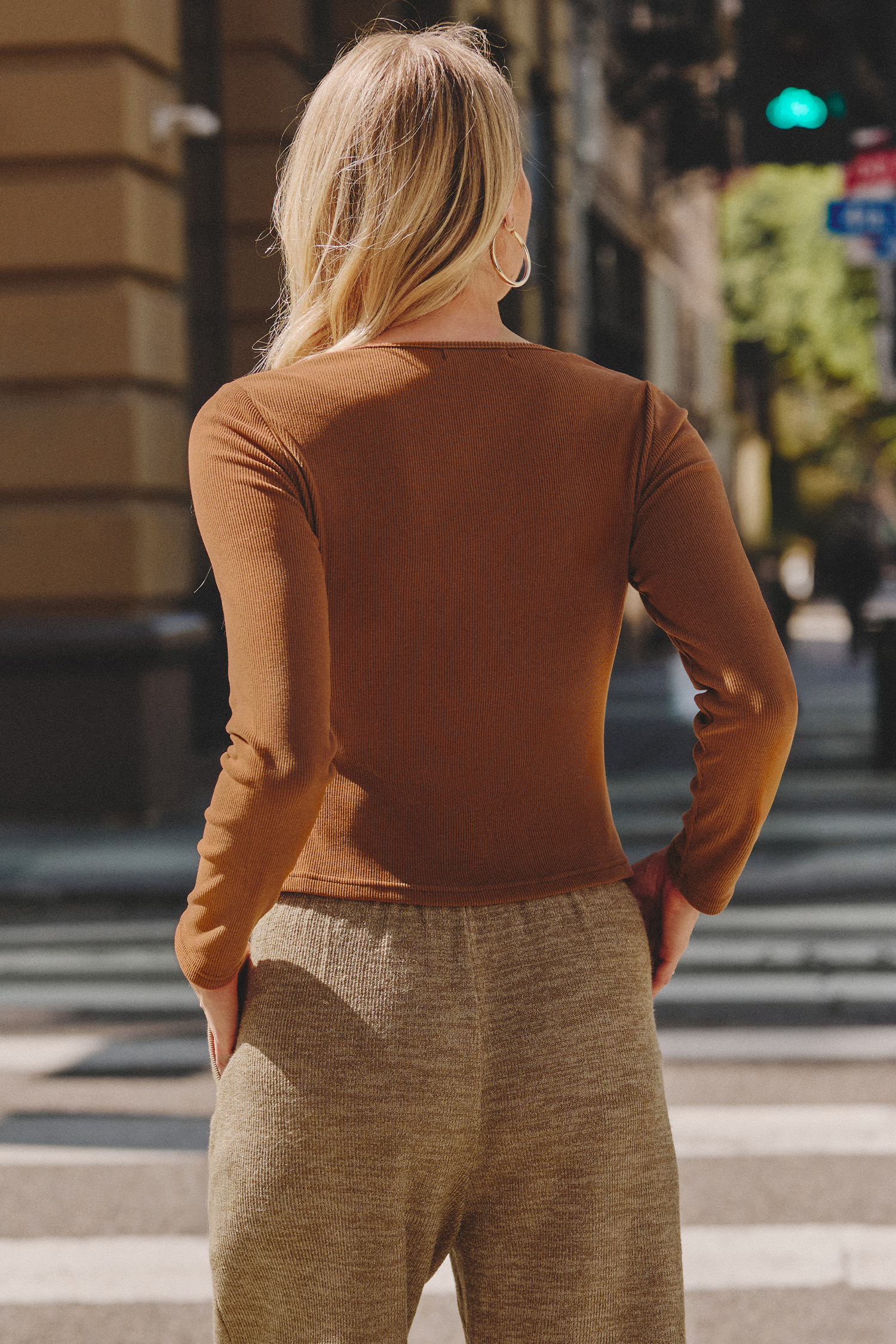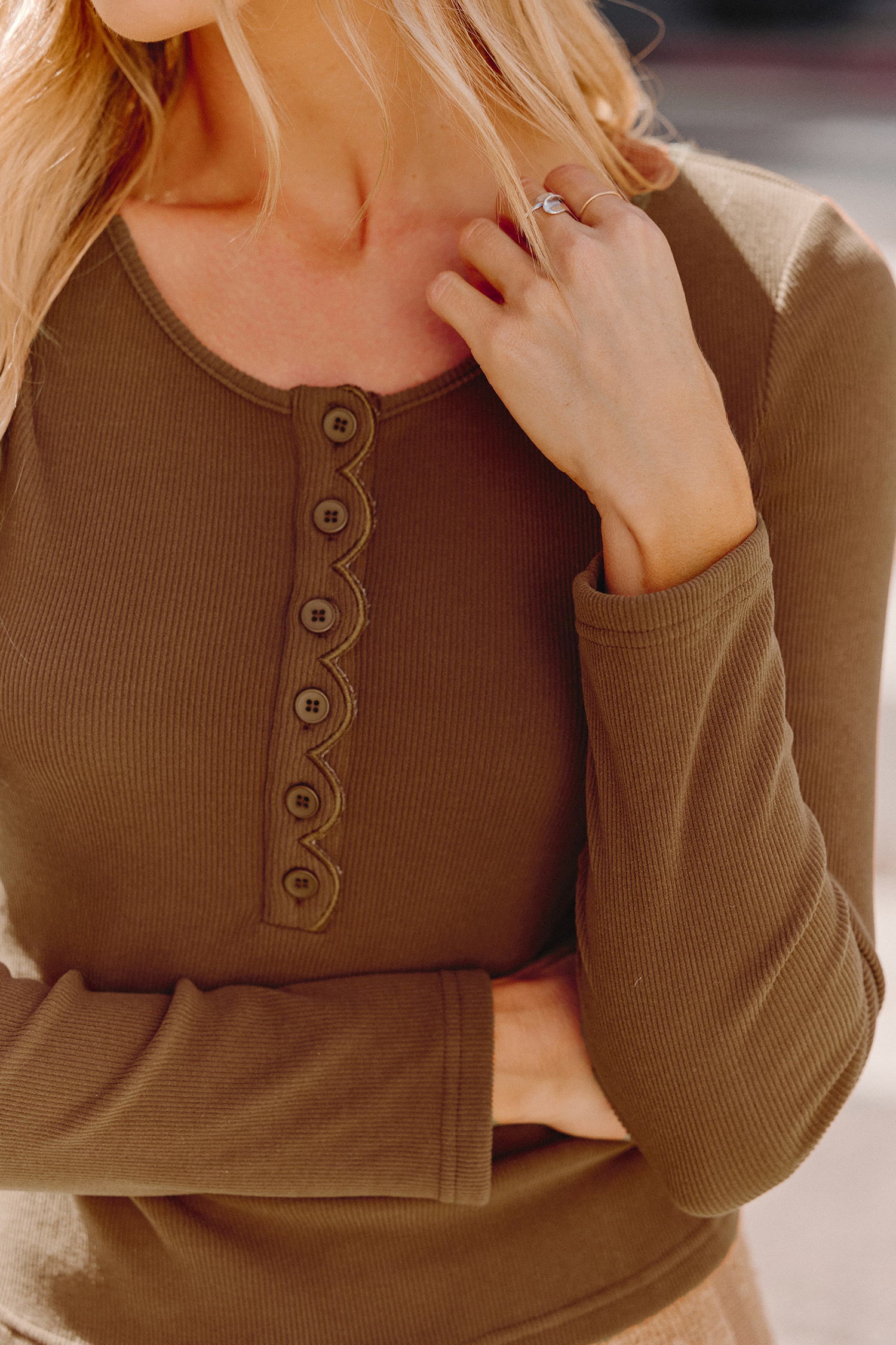 Day Well Spent Brown Top är som gjord för dagar som känns bra från början till slut! De rundade långärmarna och den vågiga kanten gör den mysig och charmig för varje del av dagen.
