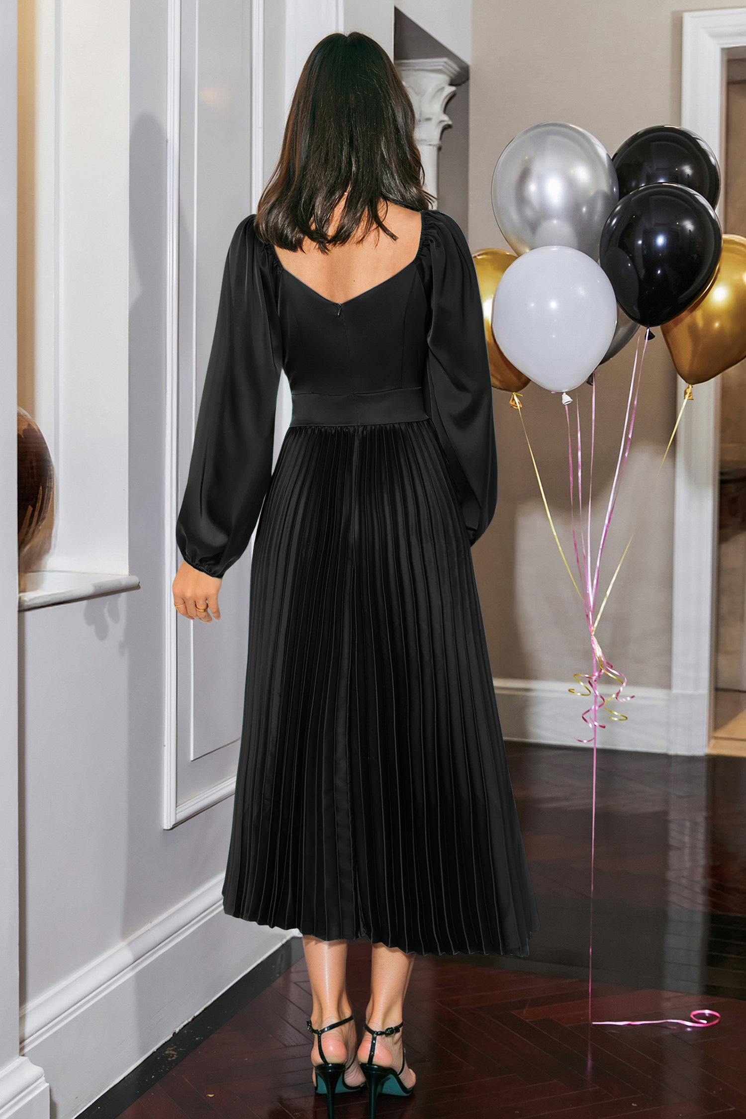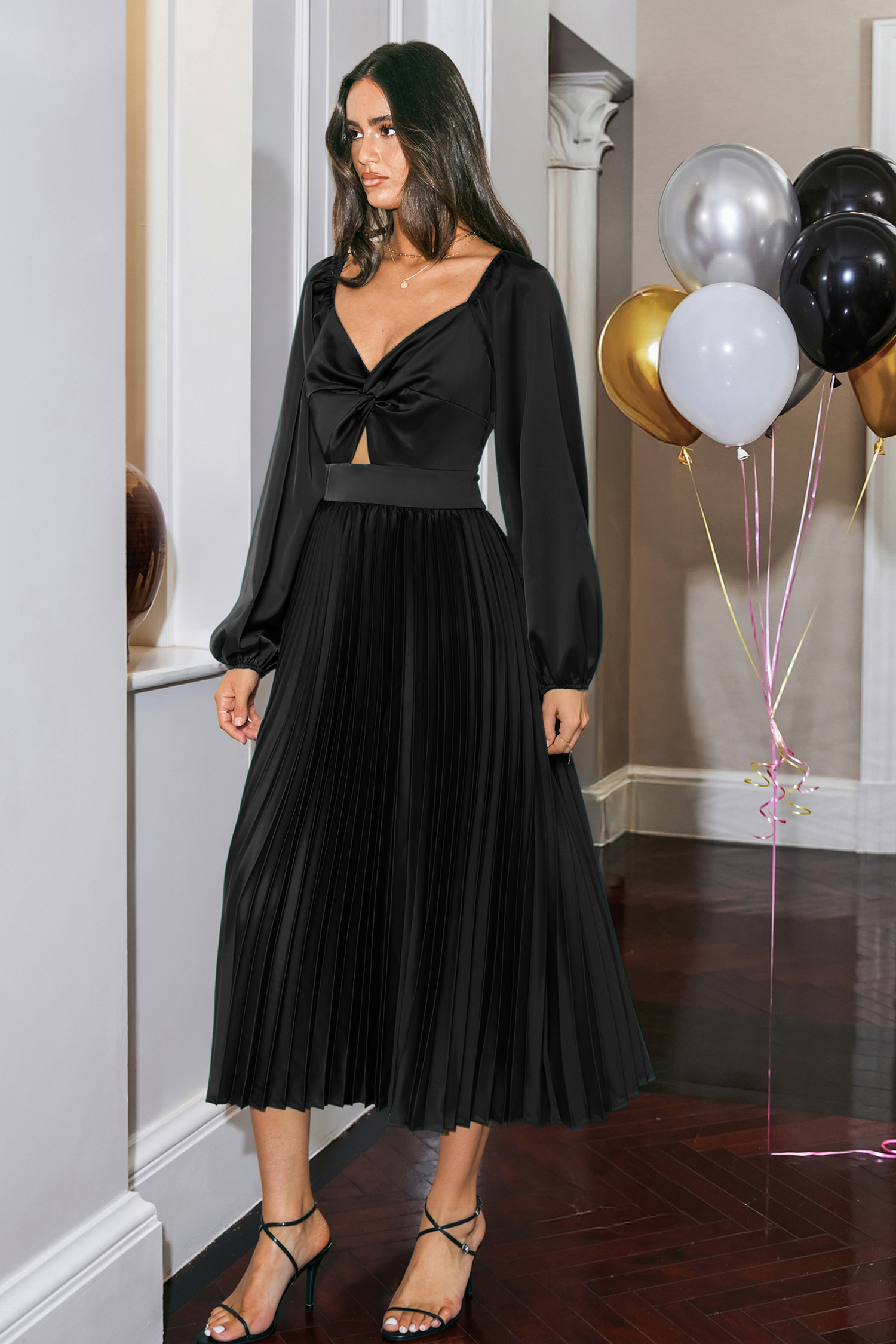 Midnight Tango Black Midi Dress är som gjord för kvällar du kommer att minnas! Med V-ringning och långa ärmar och veckad midilängd ger den en flörtig och självsäker energi till varje steg.
