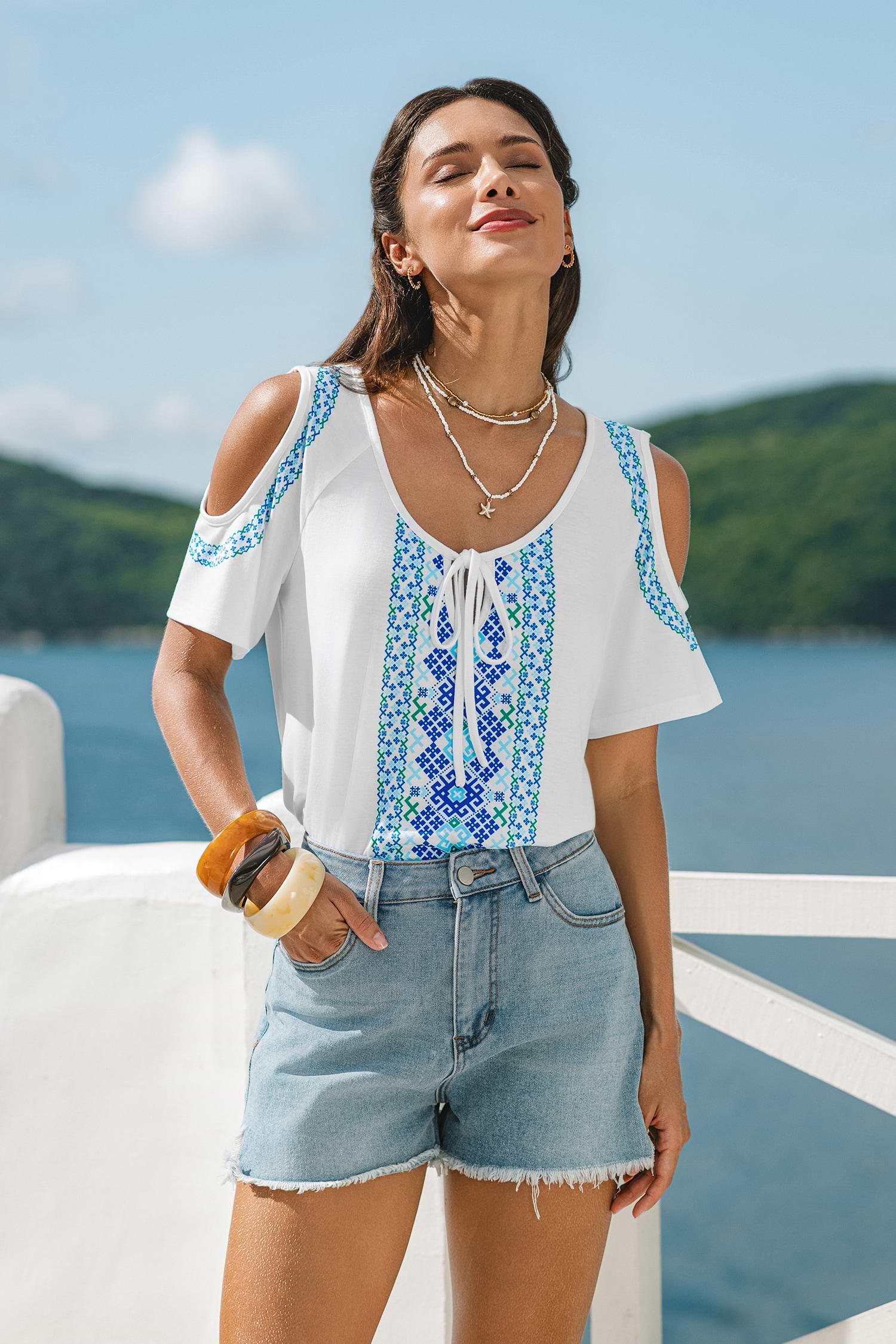 Tiki Bar Stop Ornate Top ger en enkel look med en avslappnad strandkänsla! Rund halsringning och korta ärmar i kombination med en avslappnad passform ger en bekväm vardagslook.