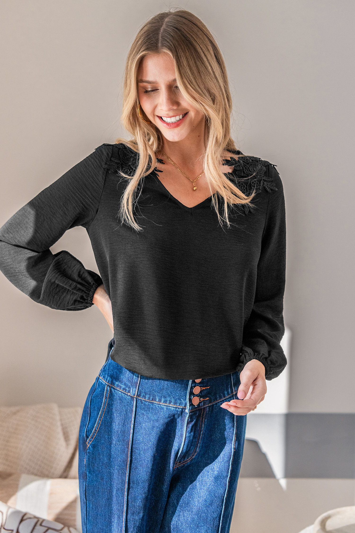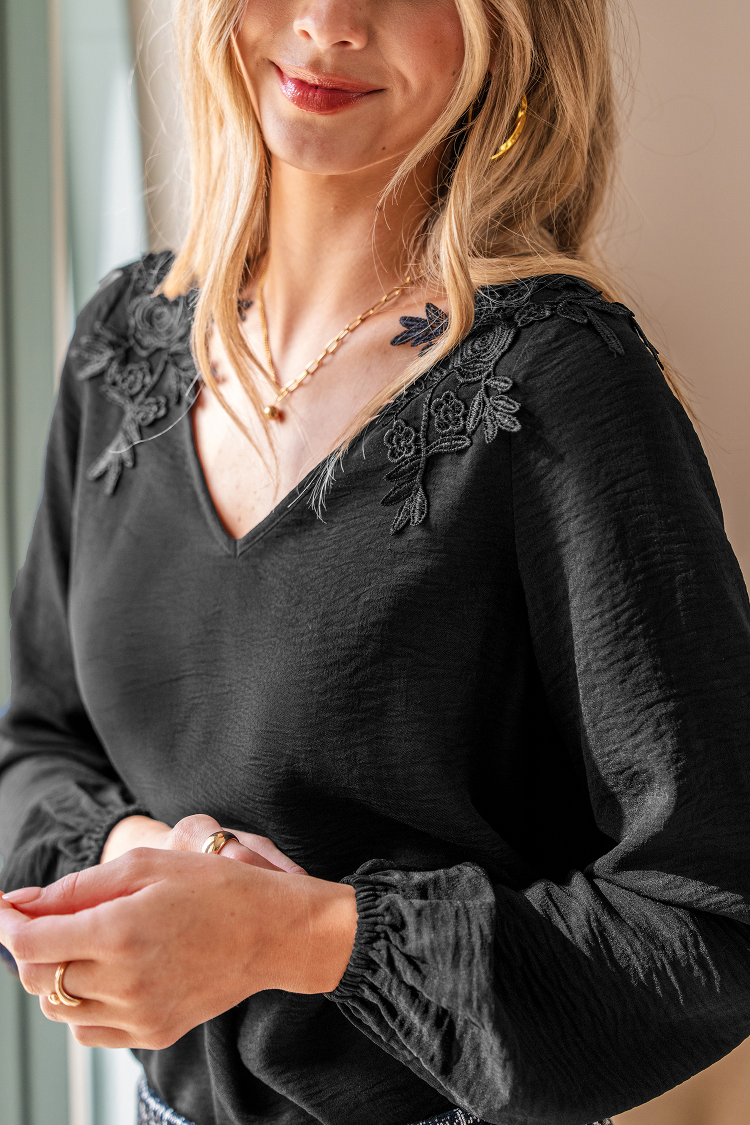 True Colors svarta topp är enkel och flörtig, perfekt för alla tillfällen! V-ringningen och de långa ärmarna ger den en smickrande och avslappnad finish.